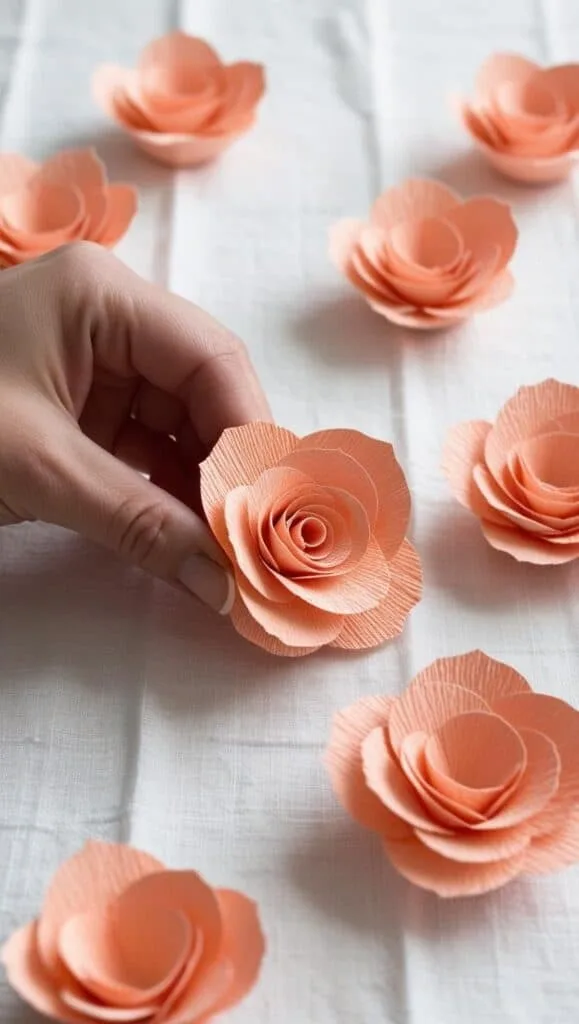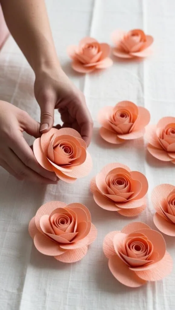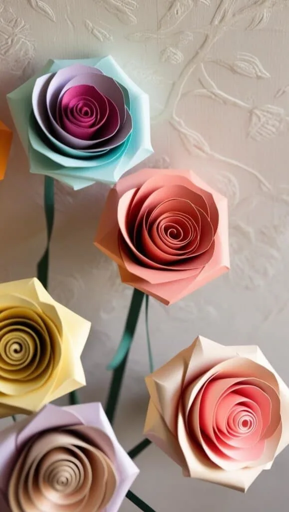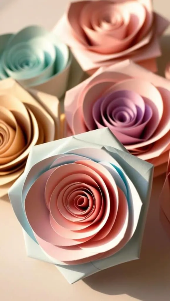 Rolled roses are one of the fastest ways to create paper flowers DIY easy projects.